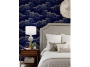 Tmavě modrá geometrická vliesová tapeta s výrazným plastickým vzorem a 3D efektem.