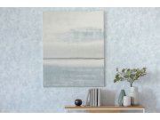 Jemně plastická, matná, šedo-bledě modrá vliesová tapeta s vinylovým povrchem - imitace štukové omítky. Foto interiéru je pouze ilustrační - odlišné barvy.