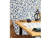 Modrá vliesová tapeta, rostliny, větvičky, listy 318035, Twist, Eijffinger