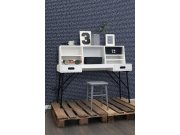 Vliesová tapeta na zeď, tmavě modrá tapeta s bílými nápisy s námořnickou tématikou.
