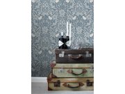 Modrá vliesová tapeta s rostlinami a ptáčky, 139477, Vintage Flowers, Esta Home