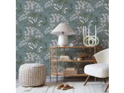 Luxusní vliesova tapeta se světle šedým podkladem a metalickými modrými květy. Foto interiéru je pouze ilustrační - odlišné barvy. Co u vás zaujme: luxusní a stylový vzhled. Design: luxusní, přírodní. Úroveň tapetování: pro začátečníky. Země původu: Holan