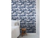 Tmavě modrá vliesová tapeta s plachetnicemi.