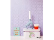 Skvělé spojení pololesklého fialkového podkladu a jemně plastického světle modrého matného květinového designu.