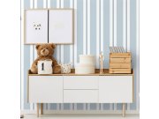Modro-bílá vliesová pruhovaná tapeta na zeď. Tapeta nejen do dětského pokojíčku.