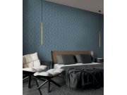 Modrá vliesová tapeta na zeď, plastický geometrický stříbrný vzor.