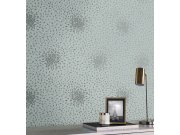 Světle modrá vliesová tapeta na zeď, hladký podklad, plastické stříbrné lístky.