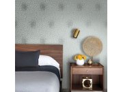 Vliesová tapeta na zeď, světlý šedo-modrý podklad, smetanově bílé listy se stříbrnými plastickými obrysy.