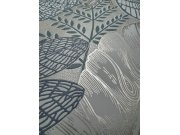 Plastická vliesová tapeta na zeď, šedý podklad, listy modré, zelené a metalické.