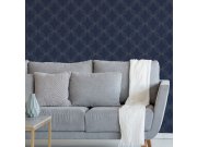 Modrá vliesová tapeta na zeď, zlatý geometrický obloukový vzor.
