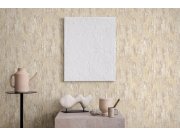 Jemně plastická pololesklá modro-zlatá vliesová tapeta s vinylovým povrchem - imitace štukové omítky. Foto interiéru je pouze ilustrační - odlišné barvy.