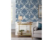 Modrobílá předklížená obrazová tapeta, damaškový vzor DM4912M, 3,41 x 2,74m, Damask, York