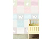 Zvířátka a geometrické vzory v pastelových barvách na obrazové tapetě. Tato je vhodná do interiéru nejmenších dětí.