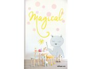Magická kočička na podkladu s růžovými puntíky - obrazová tapeta s vliesovým podkladem.