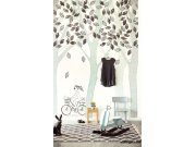 Jemné kmeny stromů v šedo-modrých odstínech s lístky a jednou malou cyklistkou se psíkem v košíku. Tapeta má navazující vzor, pokud potřebujete pokrýt širší stěnu, stačí přikoupit další kus (sadu 8 pruhů). Jednotlivé pruhy samostatně objednat nelze.