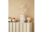 Tmavě okrová vliesová tapeta s vinylovým povrchem, drobný plastický geometrický vzorek. Foto interiéru je pouze ilustrační - odlišné barvy.
