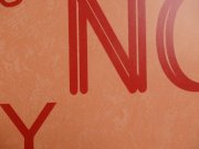 Vliesová tapeta. Červené nápisy na oranžovém podkladu.