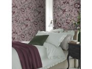 Vliesová tapeta na zeď, bohatý květinový vzor v odstínech ostružinové.