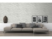 Cihly dokáží vdechnout neopakovatelnou atmosféru venkovskému i modernímu interiéru. Imitace bílo-šedé cihlové stěny na papírové tapetě na zeď dává stěně efekt hloubky.