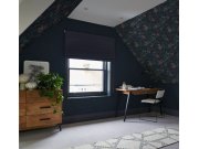 Vliesová tapeta s kvalitním papírovým povrchem - temně modrá pololesk, siluety větviček s listy.