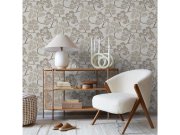 Vliesová béžová tapeta na zeď se vzorem listů.