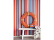 Současné trendy nadčasovým pruhům a proužkům přejí. Jsou kombinovatelné se vzorovými i jednobarevnými tapetami, nebo samostatně dokáží vymezit a zútulnit prostor. Proužky v červené, modré a oranžové barvě na vliesové tapetě na zeď.