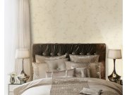 Romantická květinová tapeta - podklad krémový s jemným dekorem listů, vzor lesklé béžové růže. Snadno zkominujete se souvisejícími tapetami.