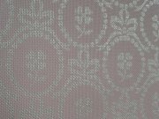 Dětská vliesová tapeta, bílý podklad, růžový ornamentální motiv ptáčků a mašliček. Tapeta má látkovou texturu, je vhodná do dětského pokojíčku.