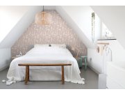 Růžová vliesová tapeta na zeď, siluety lučních rostlin.