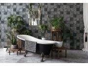Luxusní hrubě strukturovaná vliesová tapeta s vinylovým povrchem s dekorem světlých modro-šedých dlaždic. Velikost dlaždice cca 10,5x10,5cm.