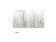Šedá vliesová obrazová tapeta s motivem listů a stromů. Foto interiéru je pouze ilustrační. Pro větší šířku lze kombinovat s fototapetami DG3MOE1012, DG3MOE1013 a DG3MOE1014 - viz foto