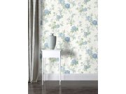 Vliesová tapeta na zeď s vinylovým povrchem v šedých a modrých odstínech s květinovým vzorem.