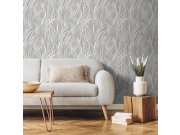 Vliesová tapeta s vinylovým povrchem, motivy listů trávy v odstínech šedé.