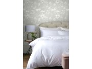 Vliesová tapeta s bílými květinovými ornamenty na světle šedém hladkém podkladu. Co vás zaujme: vyrobeno s ohledem na udržitelnost a ekologii. Design: zámecký. Úroveň tapetování: pro začátečníky. Země původu: Velká Británie. .