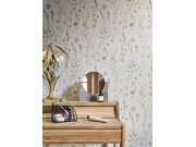 Béžová vliesová tapeta s vinylovým povrchem, vzor jemných lučních květin.
