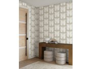 Šedo-béžová vliesová tapeta na zeď, stříbrné metalické větvičky.