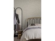 Jemně plastická vliesová tapeta na zeď, geometrický vzor v odstínech šedé a béžové, místy stříbřité linie. Foto interiéru je pouze ilustrační - odlišné barvy.