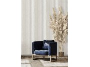 Jemně plastická, pruhovaná, šedo-béžovo-zlatá, vliesová tapeta s vinylovým povrchem.