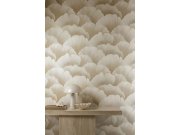 Plastická vliesová tapeta na zeď, listy Ginkga v šedo-béžových odstínech.