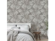 Vliesová tapeta na zeď, motivy listů a palem v šedo-béžových odstínech. Látková textura.
