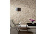 Světlá šedo-béžová geometrická vliesová tapeta na zeď, 3D efekt, šedé, béžové a metalické linie.