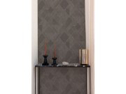 Vliesová tapeta s vinylovým povrchem, jemně plastická textura, odstíny šedé a čenré, odlesky a odstíny vytváří geometrický vzor. Foto interiéru je pouze ilustrační - odlišné barvy. Co vás zaujme: vysoká odolnost a omyvatelnost. Design: nadčasový, klasický