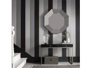 Hladká vliesová tapeta s papírovým povrchem - pruhy v odstínech šedé, černé a metalické stříbrné. Tapetu lze lepit vodorovně i svisle.