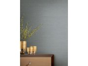 Jemně plastická temně modrá vliesová tapeta s jemným metalickým pololeskem, imitace hrubší látky.