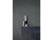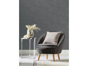 Tmavě šedá vliesová tapeta na zeď, stříbrný plastický cik cak vzor.