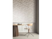 Šedo-stříbrná vliesová tapeta s vinylovým povrchem, jemná textura, netradiční vzor s hexagony. Doporučujeme vyžádat si vzorek. Foto interiéru je pouze ilustrační - odlišné barvy.