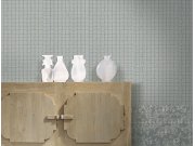 Šedá vliesová tapeta s vinylovým povrchem, šedé čtverečky se stříbrnými puntíky.