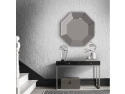 Luxusní, šedo-stříbrná, geometrická vliesová tapeta s vinylovým povchem. Kovový pololesk, výrazná textura, vzory hexagonů. Hexagon cca 10cm. Foto interiéru je pouze ilustrační - odlišné barvy.