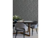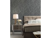 Vliesová tapeta na zeď, šedý podklad, smetanově bílé listy se stříbrnými plastickými obrysy.