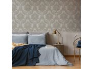 Luxusní šedo-stříbrná vliesová tapeta s vinylovým povrchem, květinový ornamentální vzor. Foto interiéru je pouze ilustrační - odlišné barvy.